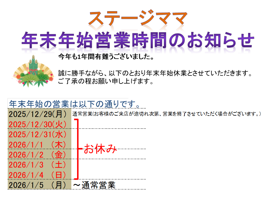 ステージママ年末年始